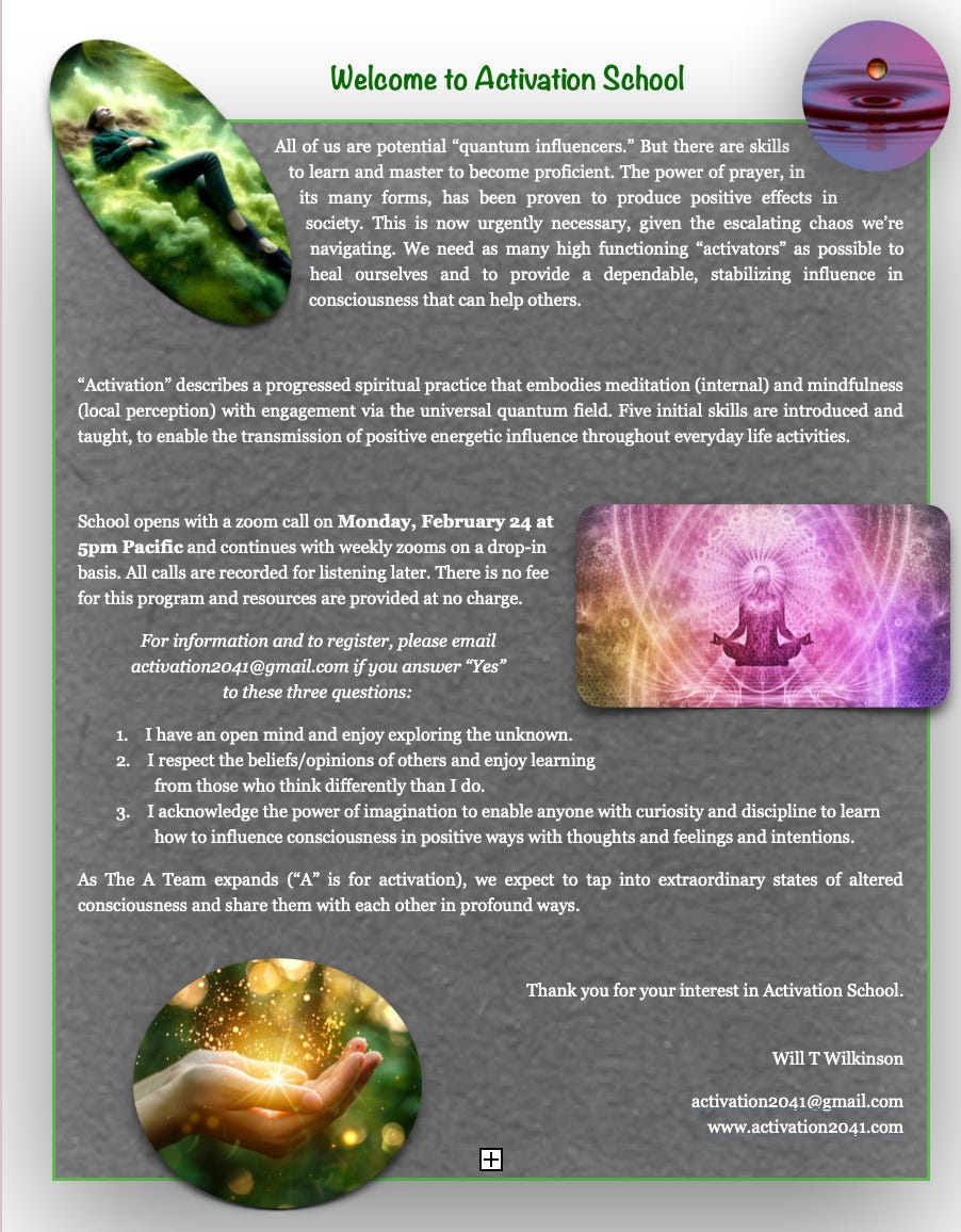 Finally, an update about Activation School. Thanks for the warm tsunami of positive response. There are just a few spaces left (3 as of this writing) and here’s the one-page info sheet. Email activation2041@gmail.com for details.