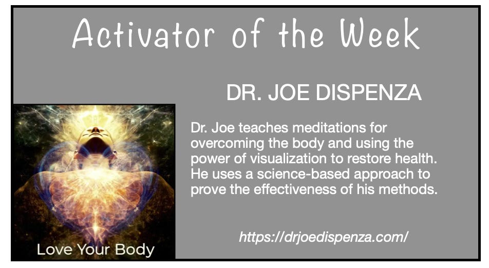 One luminary leader, Dr. Joe Dispenza, has developed a massive global following for his meditation teachings. He’s our Activator of the Week and I recommend you sample his work online. Just google, he’s everywhere.