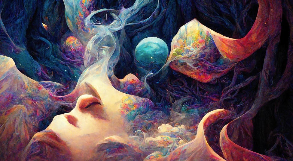 Great question, "How did we get here". By our own means or some other influences. Moving outside the dream leave what? The Void or a host of other images stemming from consciousness that we influence in some manner. It's a conundrum like a mirror reflecting a mirror generating an infinite number of additional mirrored reflections ad infinitum. Answering "How did we get here" opens up the wide realm of after life possibilities.