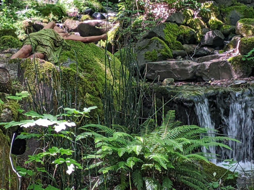 That’s our back yard here in Oregon and the feral woman is Sharon, visiting our forest.