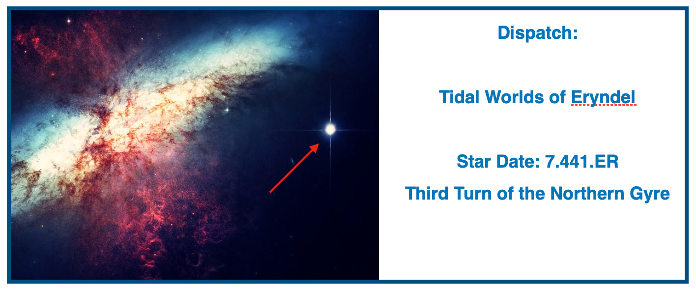 Eryndel is a water-dominant world where cities float, drift, and occasionally collide. Emotional states have long been observed to synchronize with tidal forces, an effect the Eryndelians stopped resisting generations ago.