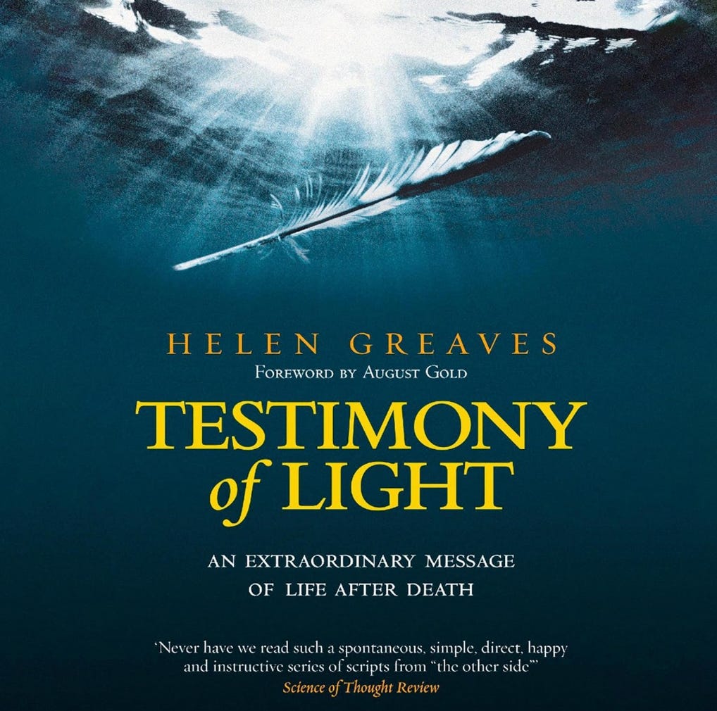 I’m reading an old book, Testimony of Light by Helen Greaves. She recounts conversations with a deceased friend who describes her life in the hereafter with remarkable detail and, here’s the kicker: it’s very much like her life was on earth, just the next level up.