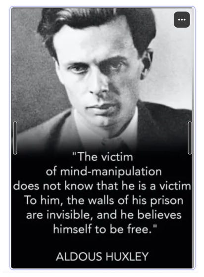 First topic: the raging insanity in society today and what/who is behind it. (Thought I’d start with a simple one!) My belief? Deliberate mind control by those seeking to establish an elite oligarchy that runs every aspect of society from the top down. This was foreseen developing long ago by many, including George Orwell who wrote about it in 1984. Aldous Huxley too.