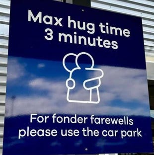 Who came up with this one? What bureaucrat decided the government has the right to tell me how long to hug my wife goodbye? This is obviously, utterly, absolutely, next level, insane!